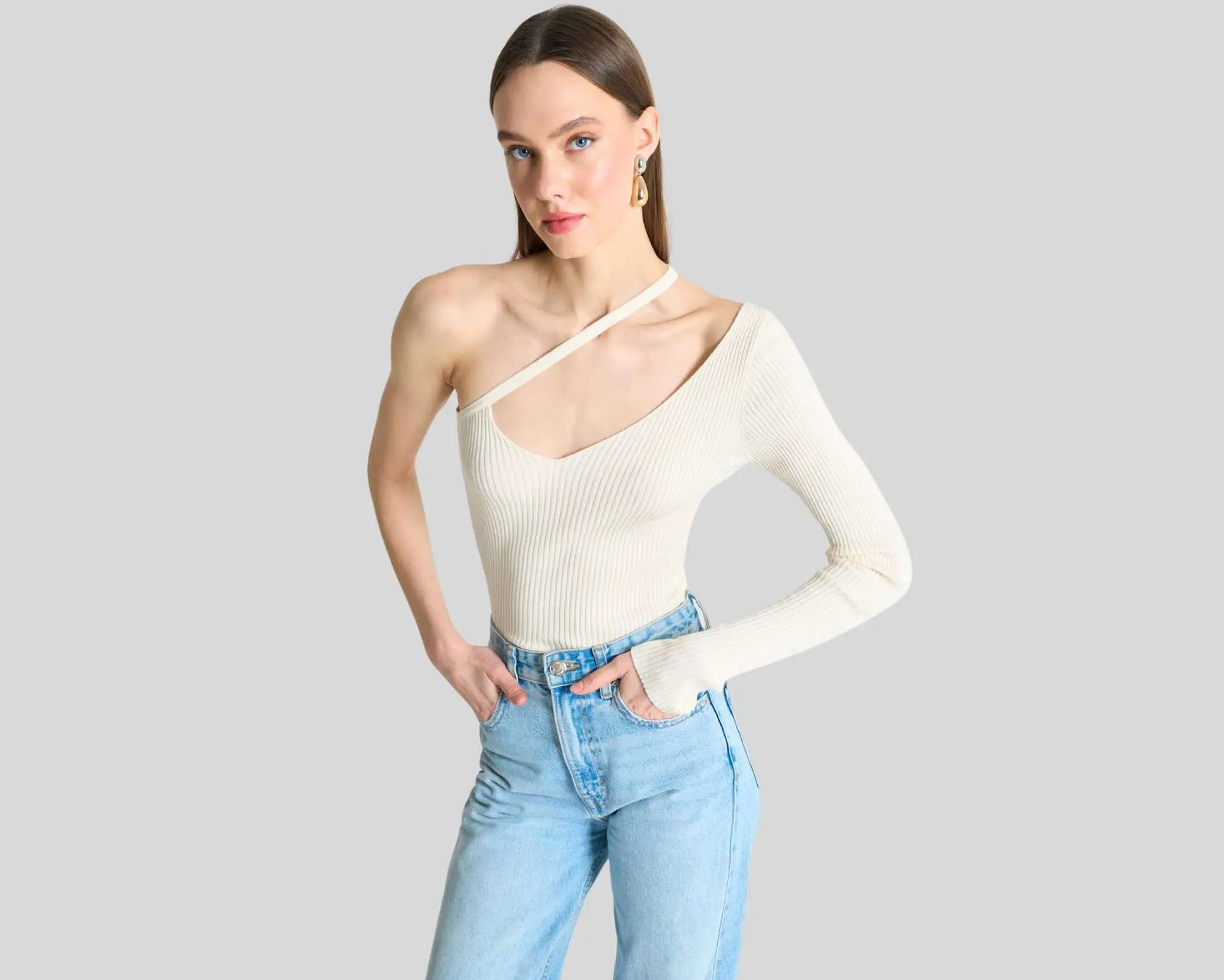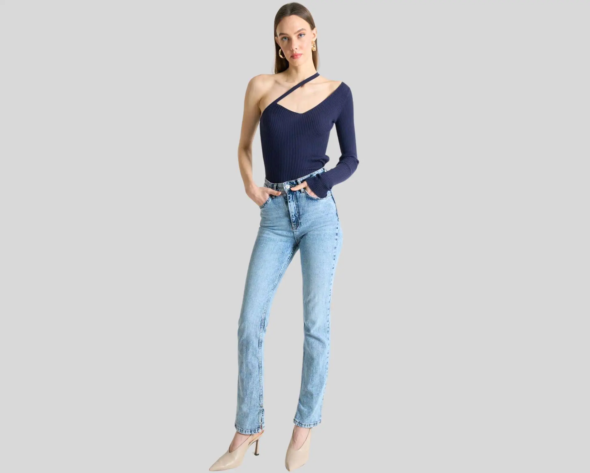 A one-sleeve blouse for women is a stylish top featuring a single sleeve, offering a modern and asymmetrical look.