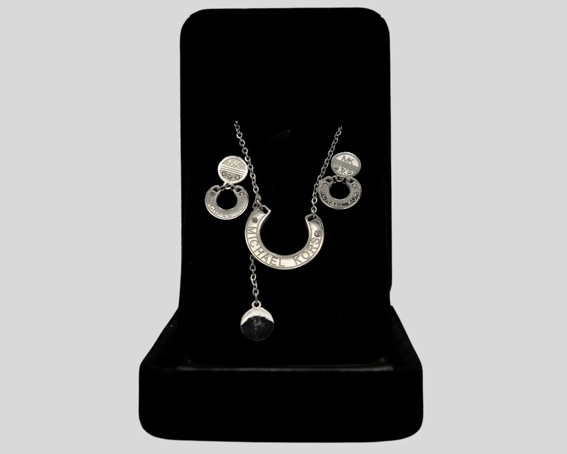 A chic and elegant Michael Kors necklace and earrings set for women, designed to add a touch of luxury and sophistication to any look.