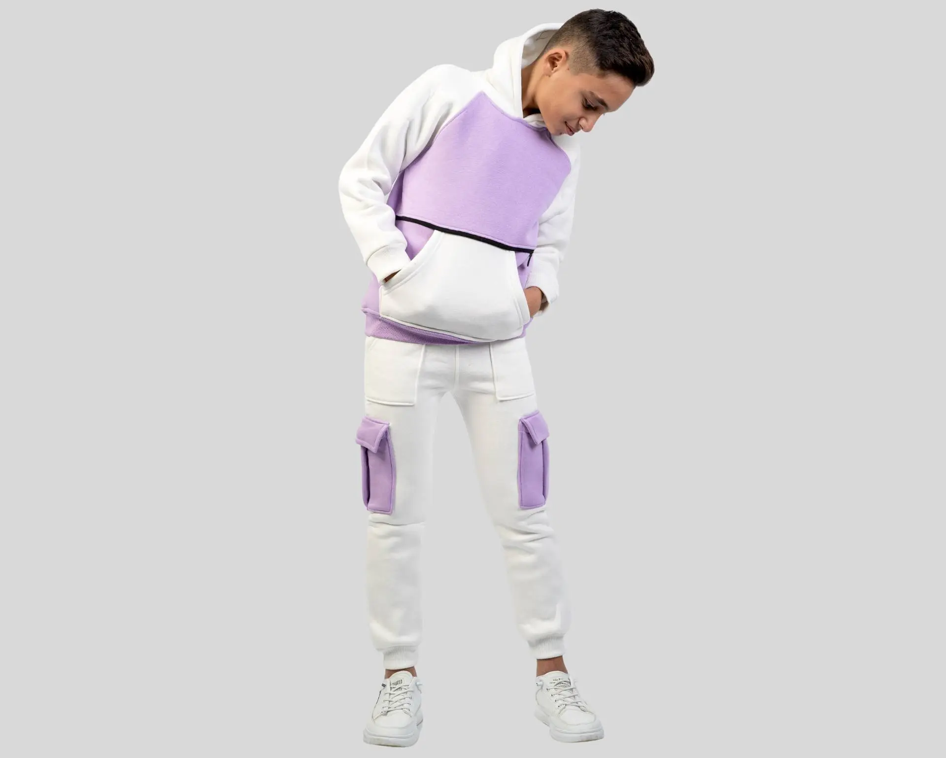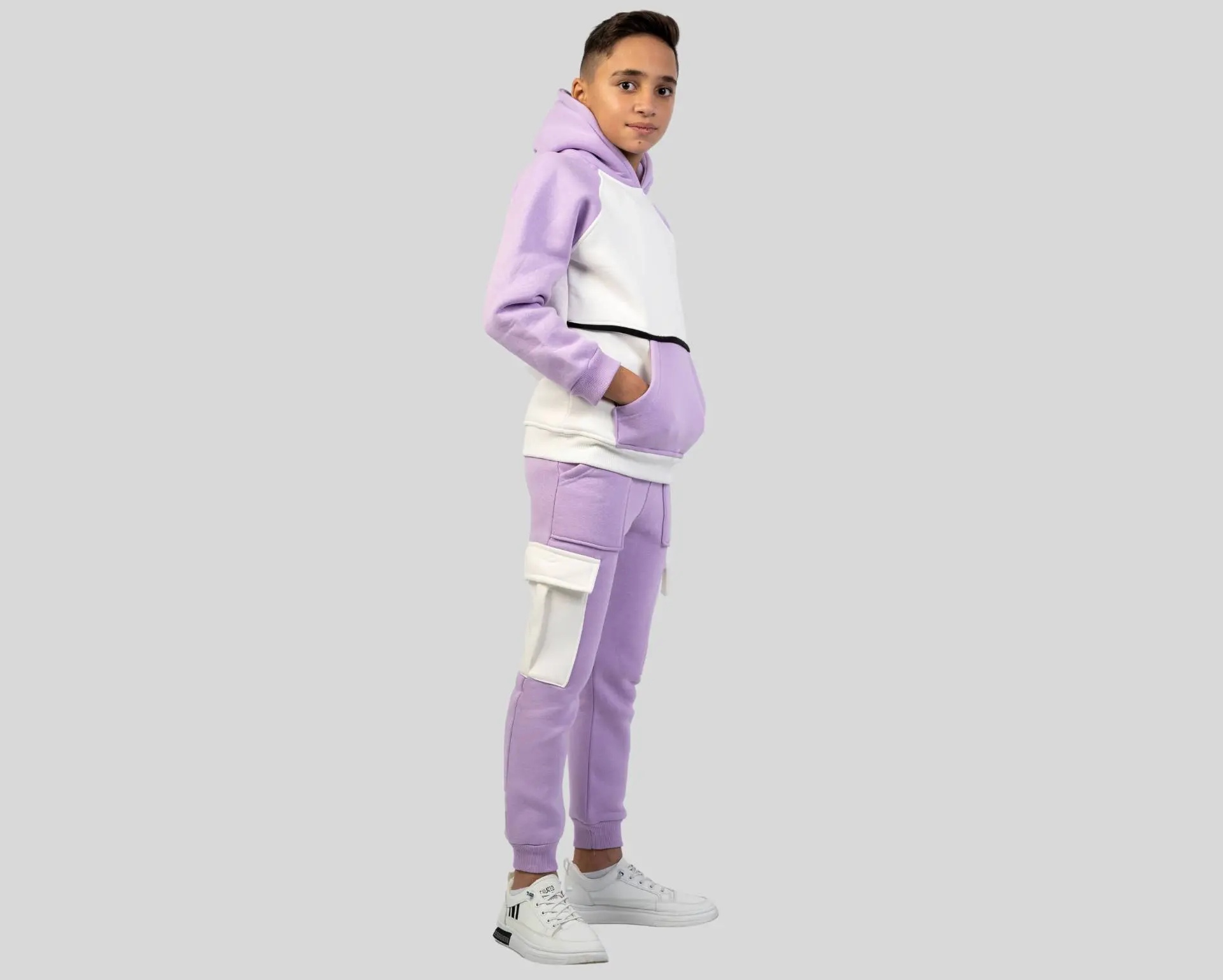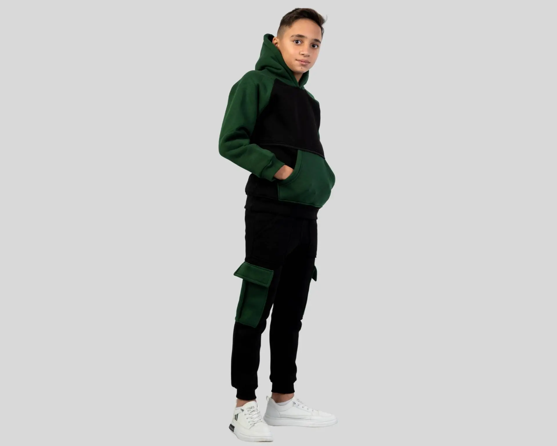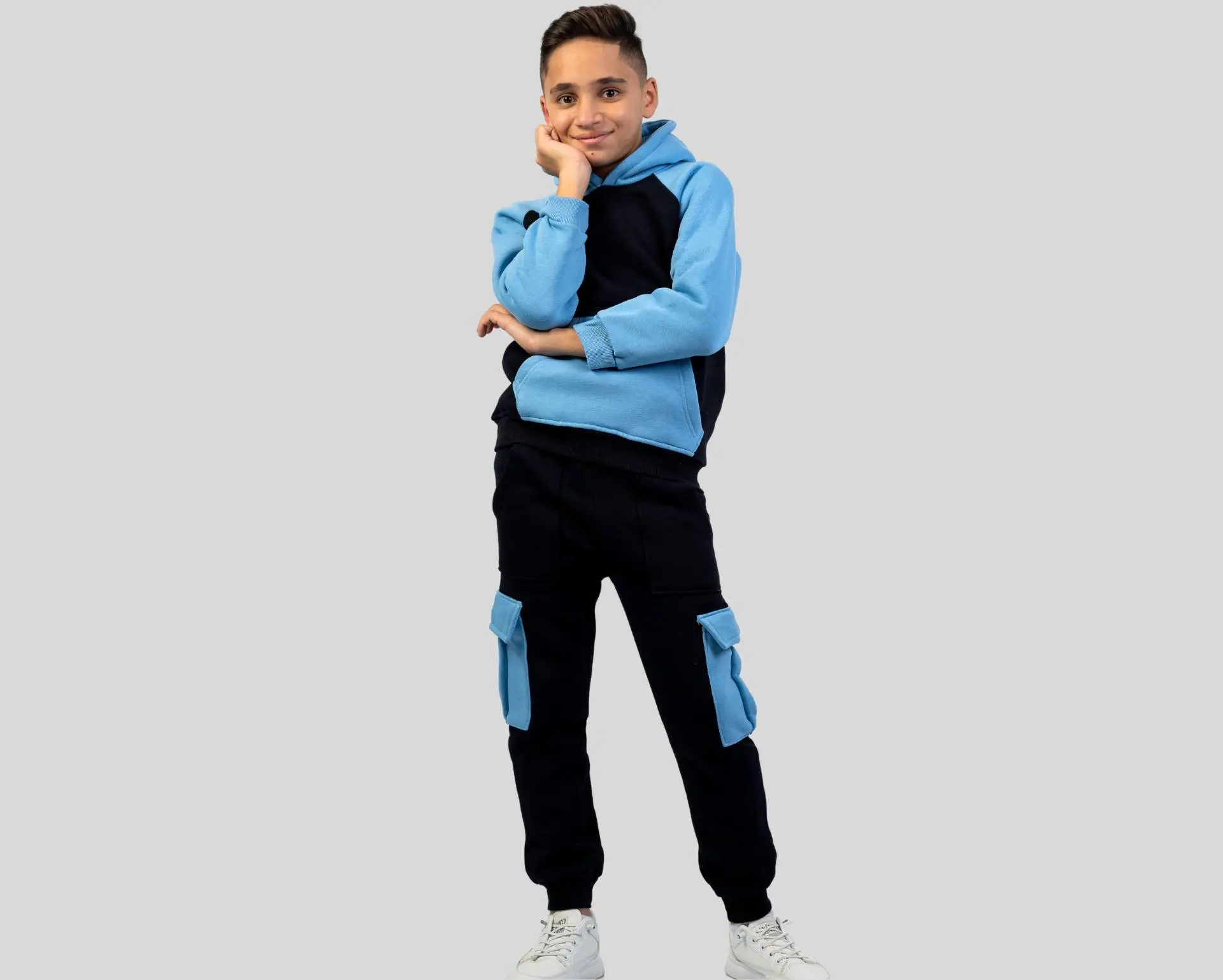 This cozy fleece hoodie and cargo pant set for kids combines warmth and style, with a soft hoodie and practical cargo pants. Perfect for school, play, and everyday adventures