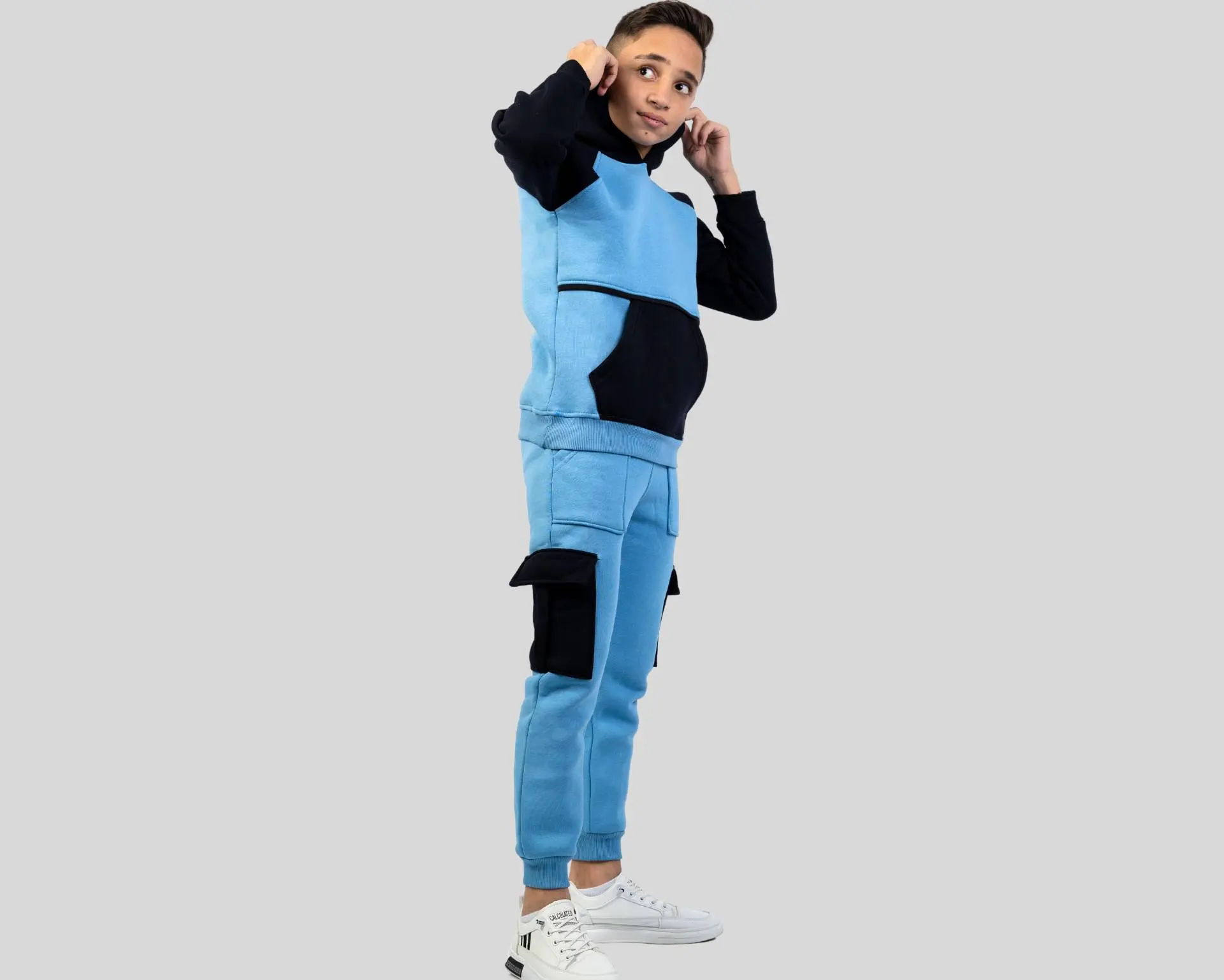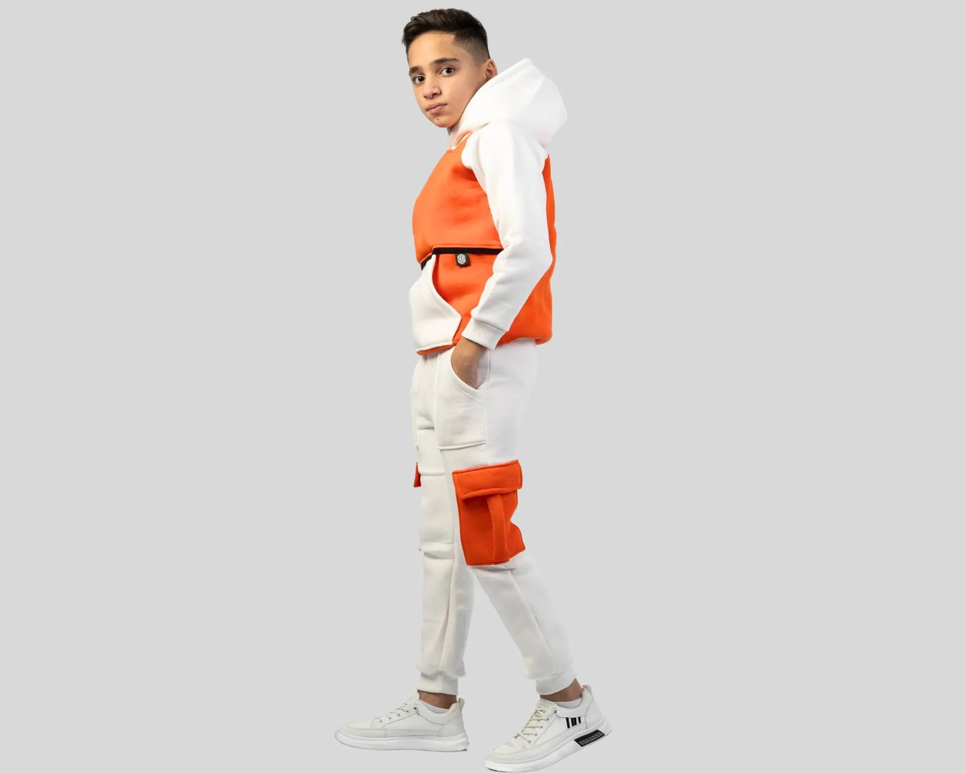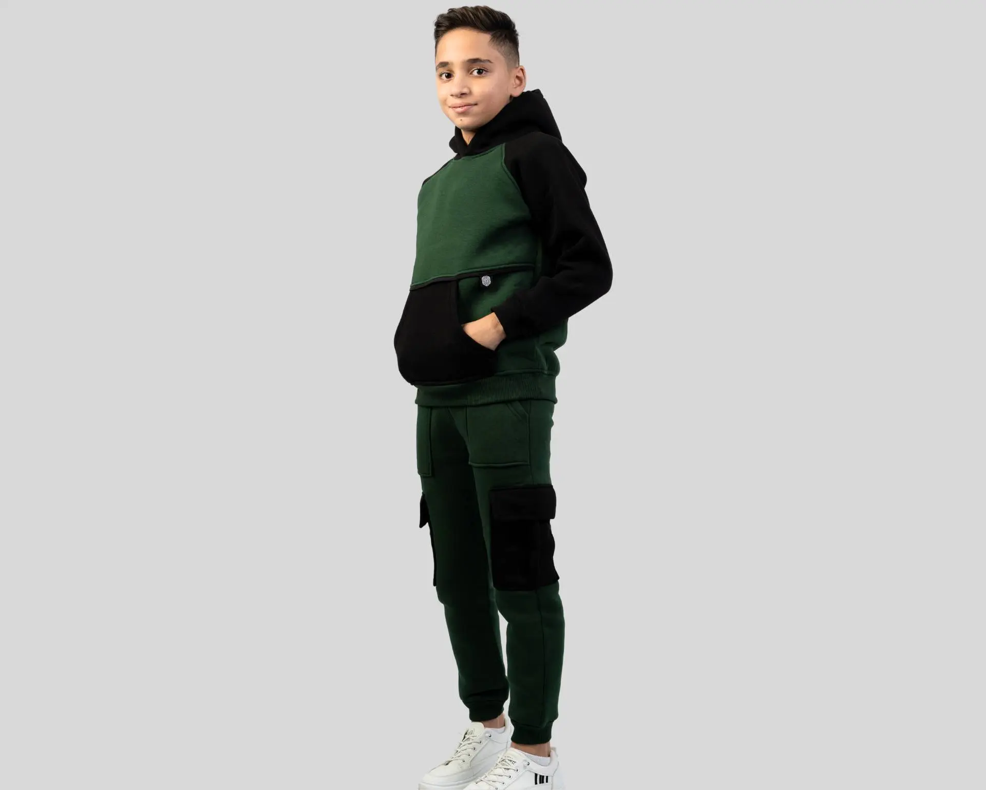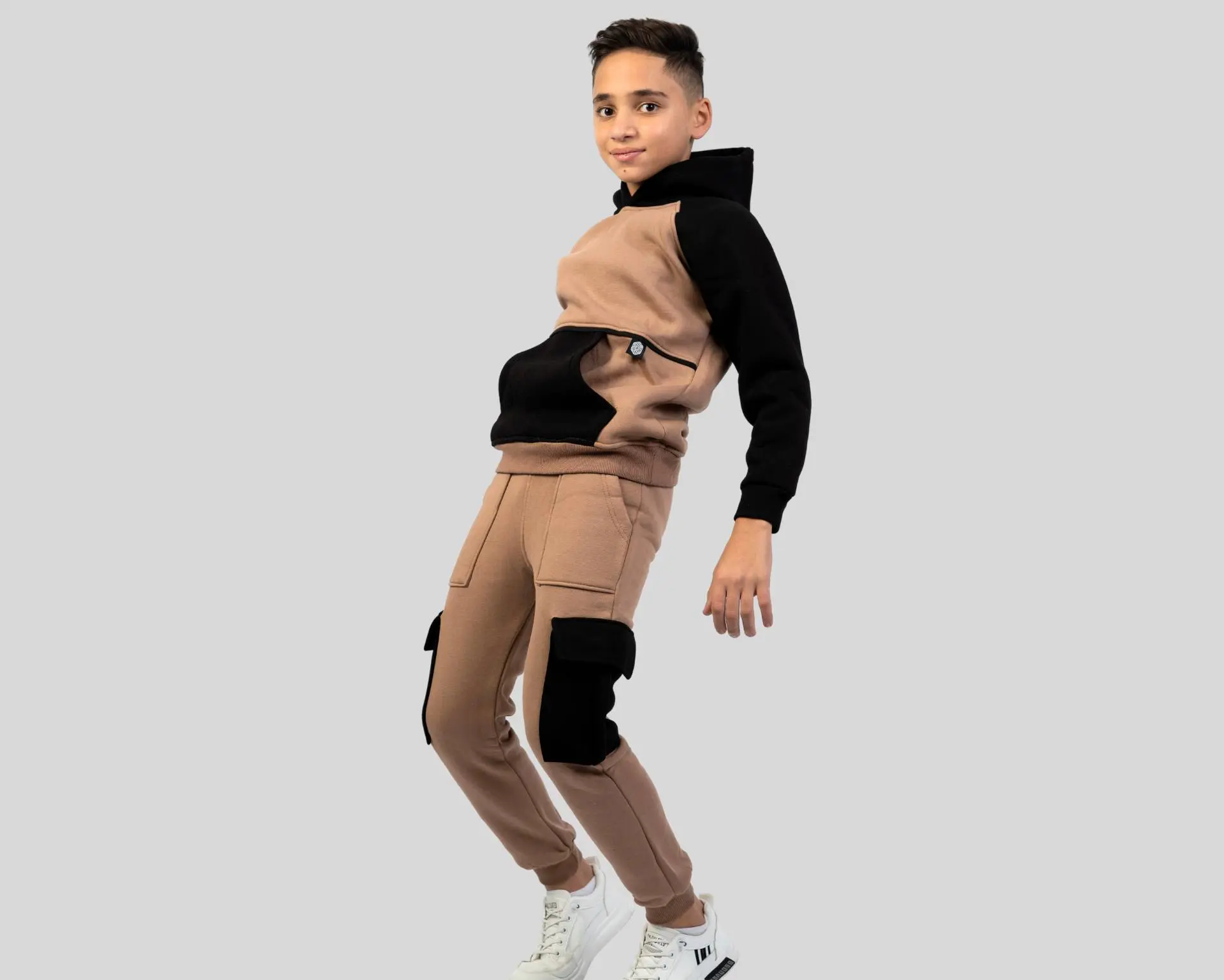 This cozy fleece hoodie and cargo pant set for kids combines warmth and style, with a soft hoodie and practical cargo pants. Perfect for school, play, and everyday adventures