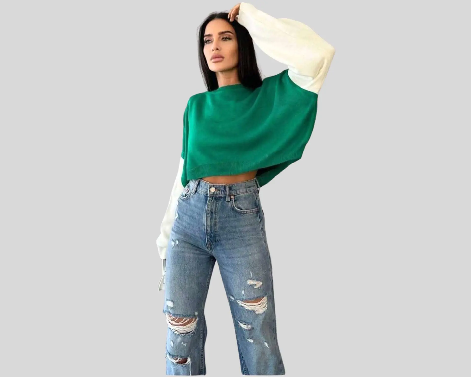 A crop triko is a short, form-fitting top made from stretchy fabric, perfect for a casual, trendy look